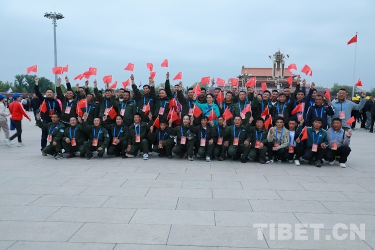 圖為2024年4月,“西藏自治區野生動物保護員進京考察學習團”成員觀看升旗儀式并集體合影留念 攝影:莫干措 (資料圖)