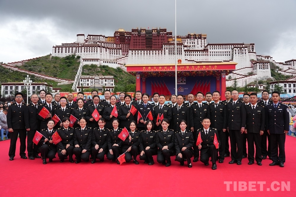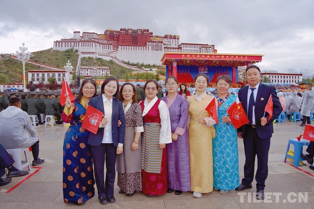圖為參加慶祝大會的拉薩海關工作人員留影 攝影:楊眉笑