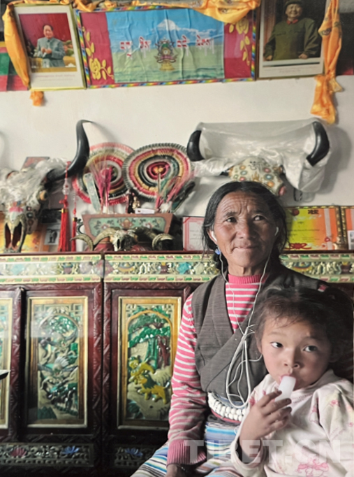 這房是我們家蓋的第三套房,2018年新蓋的,我旁邊的是大女兒和二女兒。大女兒只上了三年級,后來在家放牧。之后出嫁了,孩子已經(jīng)十八歲,現(xiàn)在在林芝上學,明年就要參加高考了。