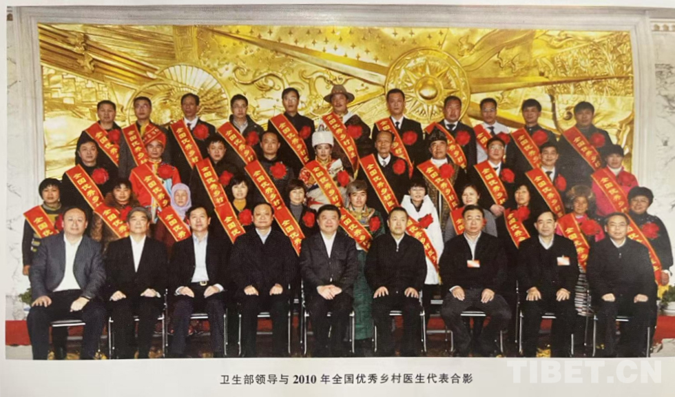 這是2010年去北京時照的。去北京參加全國優(yōu)秀鄉(xiāng)村醫(yī)生表彰會。本來那時雪大封路不好走,我說不去,但縣里堅持要我去。先是坐車到拉薩,然后坐飛機到重慶,再從重慶到北京。這次是我第一次坐飛機,起初有點害怕,但心想:“這么多人坐飛機都好好的,我肯定也沒事”。頒獎在衛(wèi)生部,領獎后去了天安門、故宮、鳥巢和水立方等地參觀,非常高興。