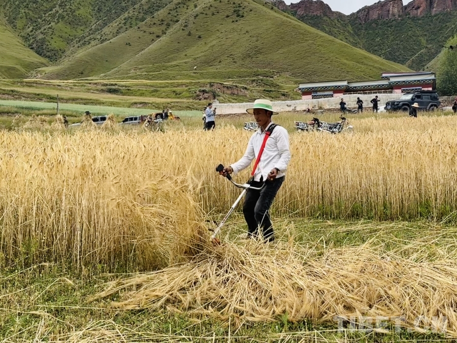 中國西藏網訊 八月的青海省玉樹藏族自治州囊謙縣毛莊鄉孜榮村,青山疊翠,流水潺潺。瀾滄江支流孜曲河蜿蜒穿過村莊,滋潤著兩岸廣袤的農田。成熟的青稞田在高原陽光下熠熠生輝,映照著農牧民燦爛的笑容。在這片平均海拔超過4000米的土地上,村民們開鐮收割黑青稞,處處洋溢著豐收的喜悅。