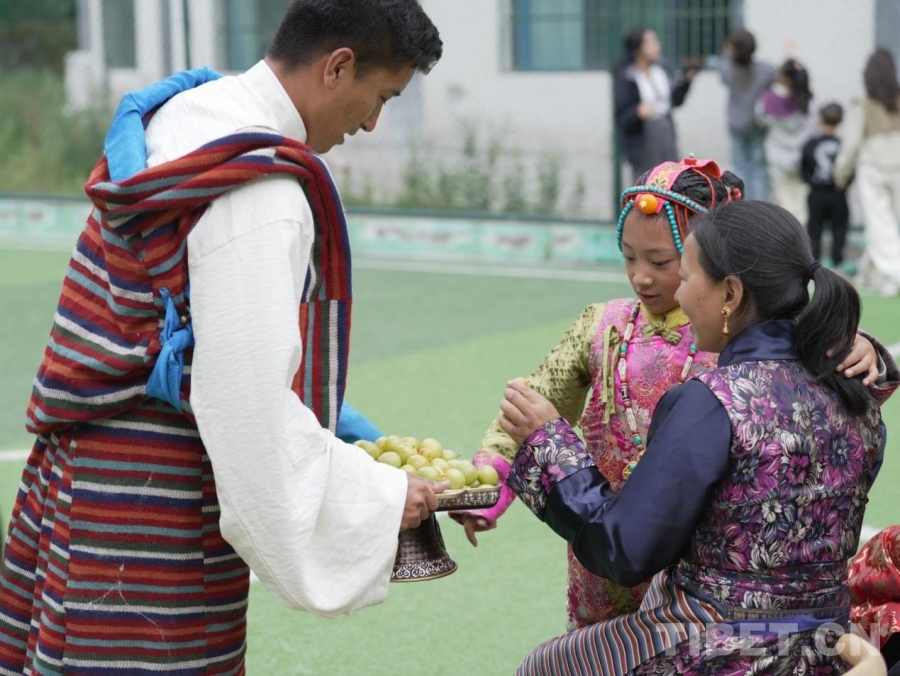大家圍坐交流,家長(zhǎng)們細(xì)致講述藏裝配飾的象征意義,孩子們認(rèn)真聽著縣群團(tuán)工作部老師講述節(jié)日傳說。在服飾走秀環(huán)節(jié),藏族少女白瑪央吉牽著妹妹的手款款走來,盡顯藏族服飾的華美與端莊;鍋莊舞表演時(shí),人們手拉手,舞步踏響同一節(jié)奏。品嘗特色美食時(shí),亞東李子、奶渣、鮭魚罐頭等特色美食登臺(tái)亮相。支教團(tuán)成員與家長(zhǎng)化身“美食代言人”,盡情分享美食,樂在其中。