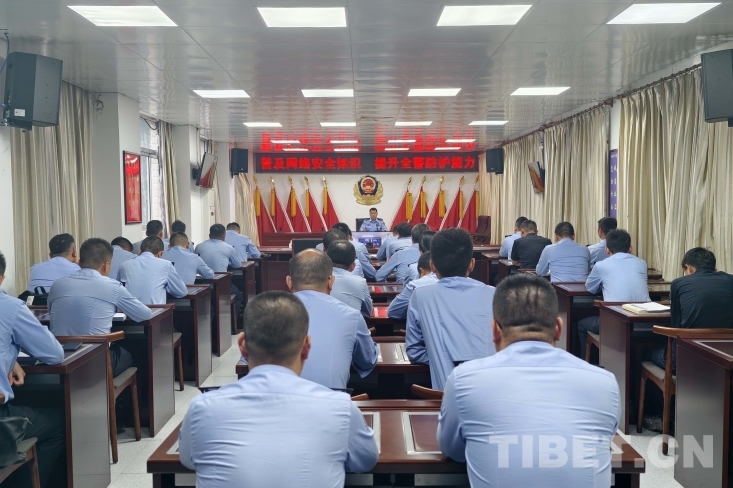 圖為聶拉木邊檢站民警集體學習網絡安全知識