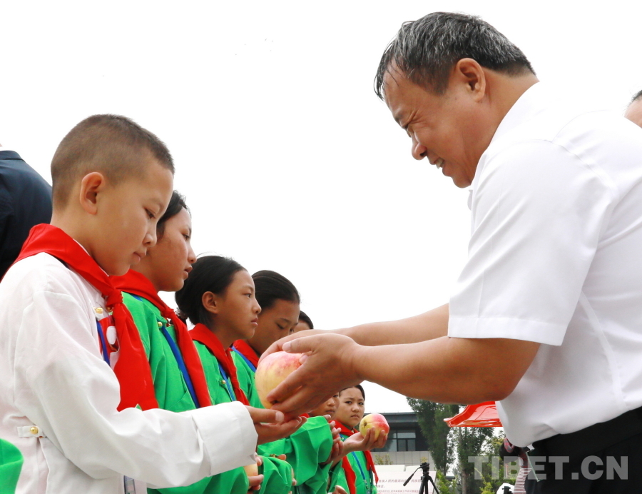 圖為阿里師生接受代表民族團結與友誼的石榴 攝影:劉莉