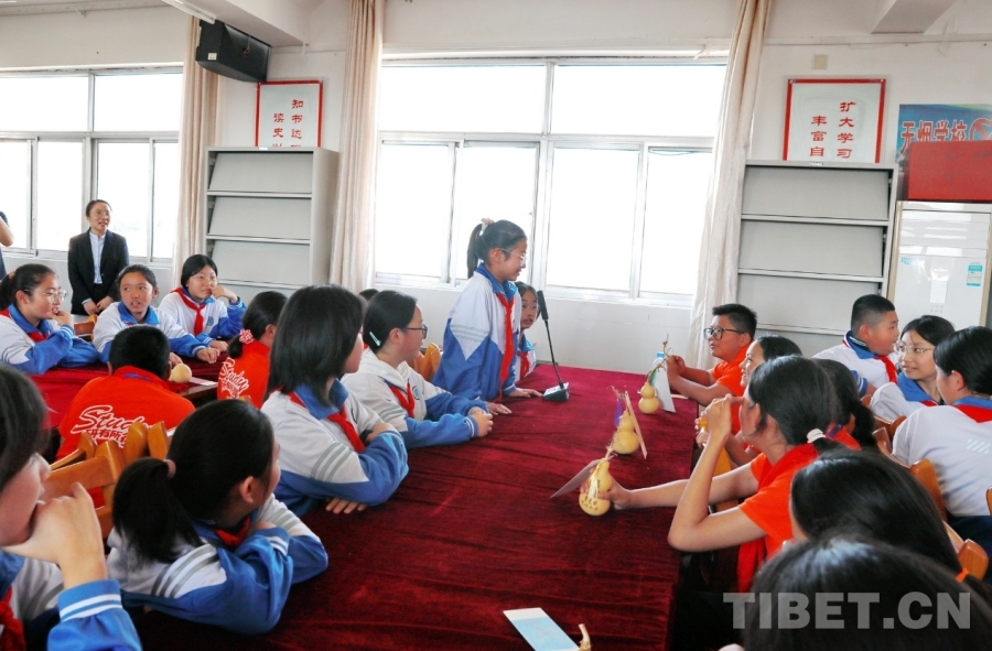 圖為山東聊城堂邑鎮中心小學的孩子們向西藏阿里噶爾縣孔繁森小學的小伙伴贈送當地特色的葫蘆和祝福卡片。每一張卡片上都有孩子們親手寫下的最想對遠方的小伙伴說的祝福語、心里話。攝影:劉莉
