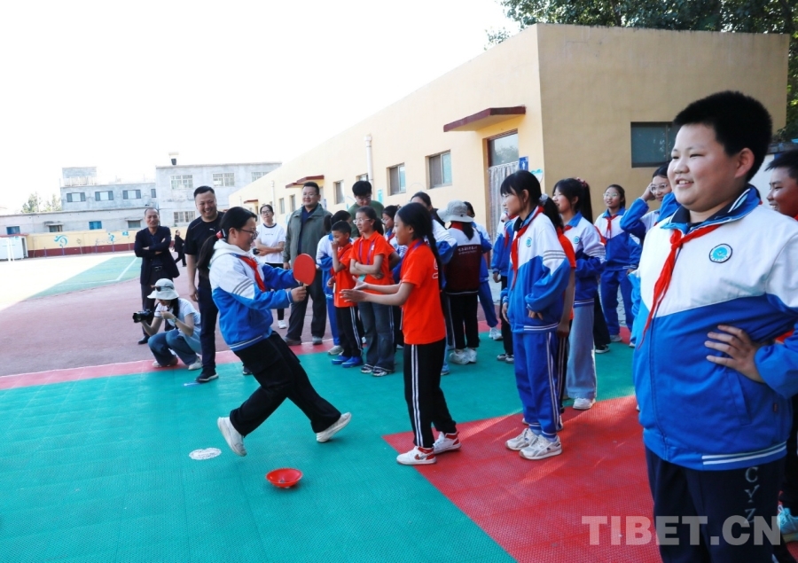 中國西藏網訊 9月25日,西藏自治區阿里噶爾縣孔繁森小學的師生來到位于山東省聊城市的堂邑鎮中心小學開展聯誼活動。堂邑鎮是孔繁森同志的故鄉。兩所學校的孩子們一起瞻仰孔繁森同志事跡、一起做游戲、同唱中國少年先鋒隊隊歌、共繪迎國慶主題畫卷……結下了深厚的情誼。