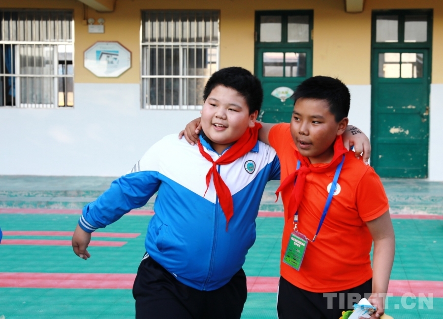 圖為西藏阿里噶爾縣孔繁森小學的孩子們在山東聊城堂邑鎮中心小學開展聯誼活動 攝影:劉莉