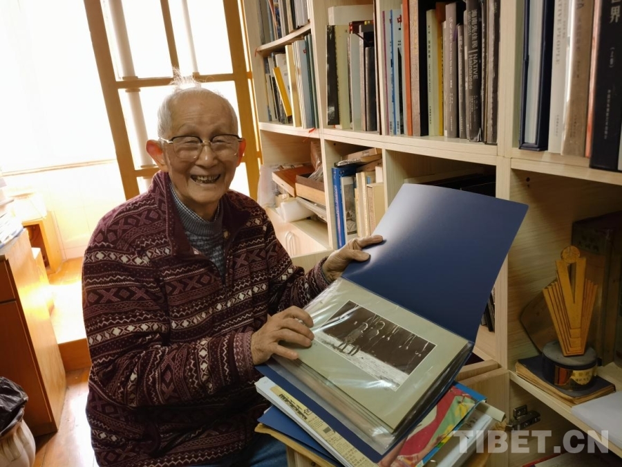 3月21日,我懷揣相冊,專程登門拜訪丁遵新先生。來到丁先生家,一壁字畫,滿屋書香。92歲高齡的先生,依舊精神矍鑠,思維敏捷。我說明來意,攤開相冊,請先生辨認這組西藏照片是否出自他手?先生凝視著照片,一時語塞,說:“當年湖北團只有我一名攝影記者,這些相片肯定是我拍的?!奔又?,老先生進到書房翻騰了好久,終于又找出兩張當年的西藏照片,其中一張為罕見彩色印刷品,加上我母親保存的,總計12幅。