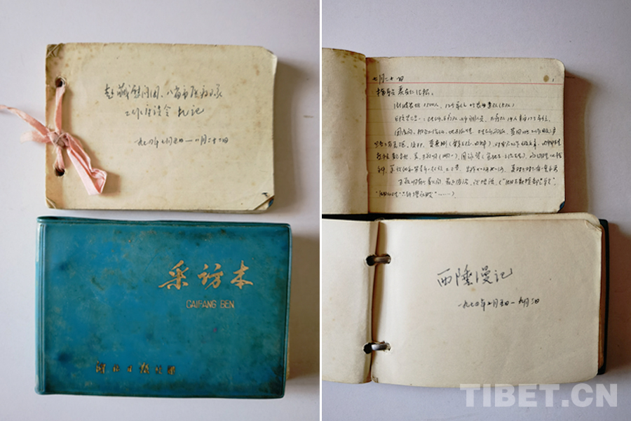 梳理完這些親手拍的片子,丁先生突然想起,他當年赴藏寫有日記,還保存著,我大為驚訝,本能地意識到這是極珍貴的檔案資料。先生又翻書柜,找出個小本子,上面依時間順序,密密麻麻地記載著湖北團隊幾乎每天的活動。真是難得一見的寶貝呀!經先生同意,筆者對日記逐頁拍照,帶回家研究。