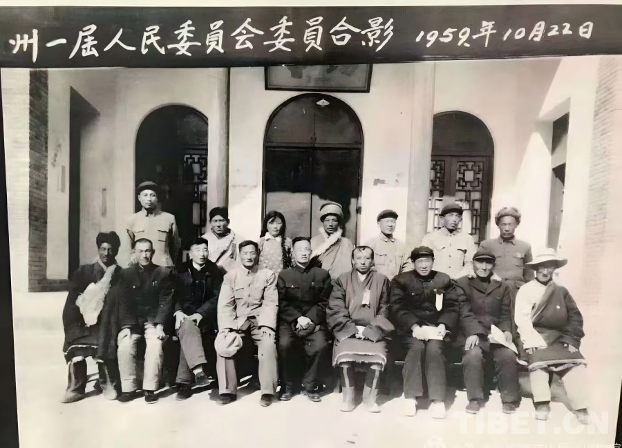 圖為1959年10月,米福堂(前排右二)當選玉樹州第一屆人民委員會委員