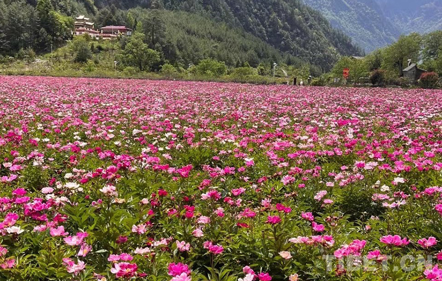 圖為最早種植芍藥時,色龍村的花海 來源:當地供圖