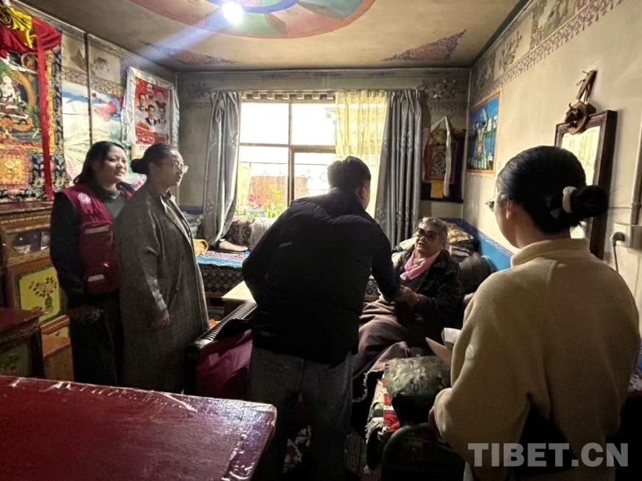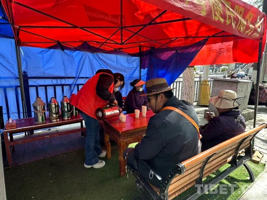 圖為在社區便民服務點工作人員在為社區老人提供酥油茶 受訪者供圖