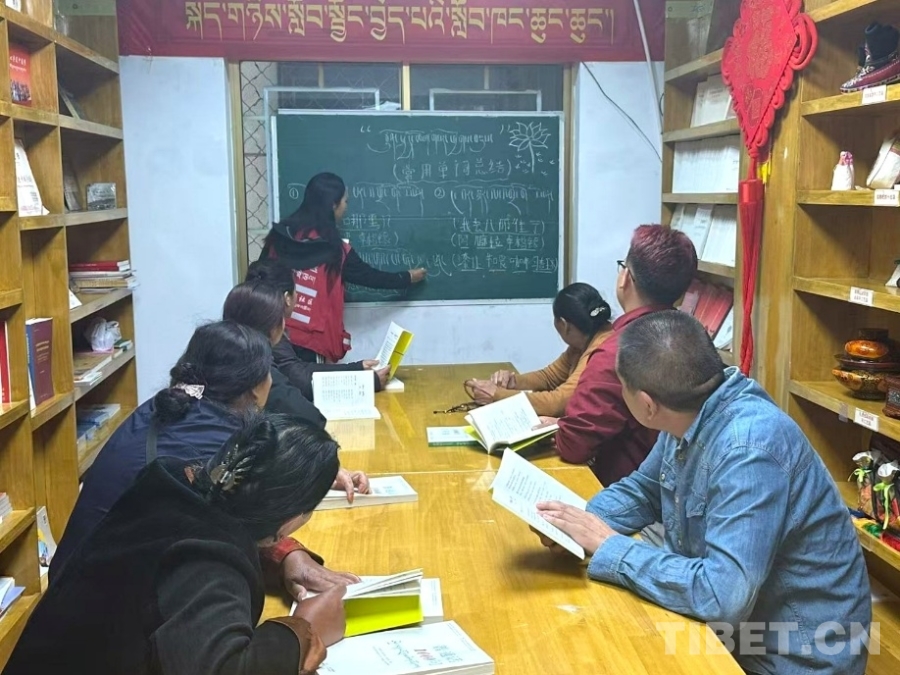 作為全區唯一一個全國“雙語”學習特色社區,魯固社區把“學語言”變成了“聚人心”的紐帶。走進社區服務中心的雙語學習小課堂,長桌擦得發亮,小黑板上密密麻麻寫滿了藏漢雙語的日常用語,墻角的書架上整齊擺放著《普通話1000句》和《走遍拉薩300句》。