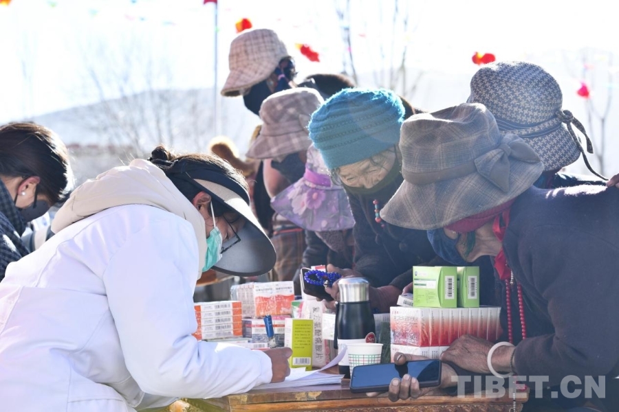 圖為拉孜縣錫欽鄉“村晚”現場,醫生正在為村民們義診。攝影:趙振宇