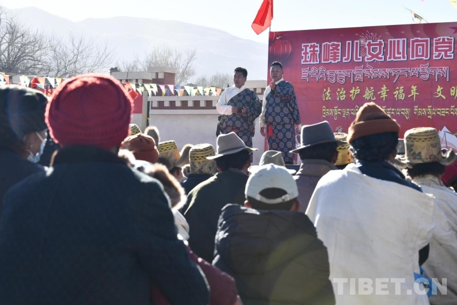 中國西藏網訊 1月7日,在日喀則農事新年即將來臨之際,西藏日喀則市拉孜縣錫欽鄉以一場別開生面的“村晚”為喜遷新居的受災群眾迎接第一個新年。通過群眾自編自演的文藝節目、互動式法治宣講、政策解讀等生動形式,把法律知識、文明新風融入節日活動。不僅豐富了農村精神文化生活,傳承了優秀傳統文化,更以群眾喜聞樂見的方式傳播法治理念,引導群眾自覺尊法學法守法用法,展現出災后重建家園、共創美好生活的信心與力量。(中國西藏網 記者/趙振宇 旦曲)