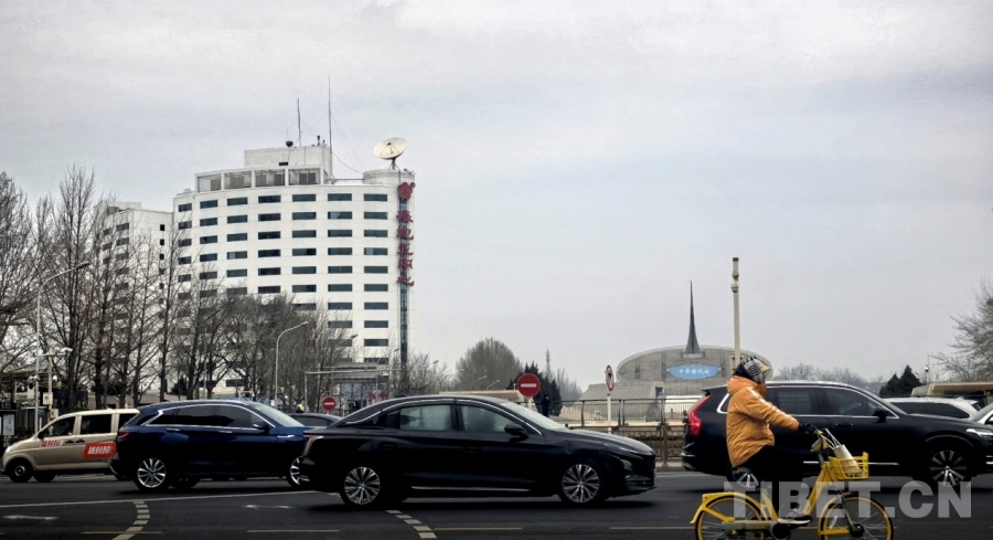 在北京西長安街南側遠眺2026年全國兩會新聞中心所在地梅地亞中心 攝影:劉莉