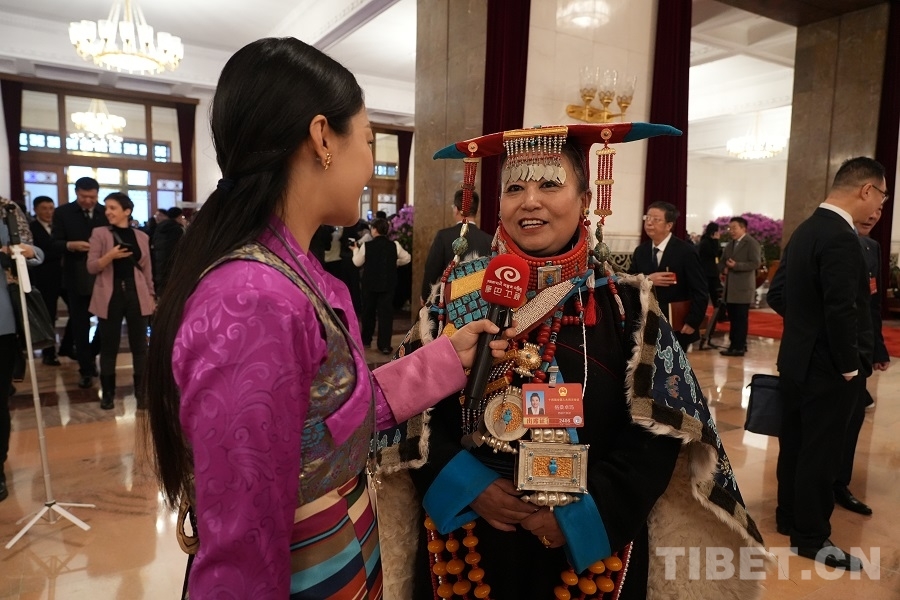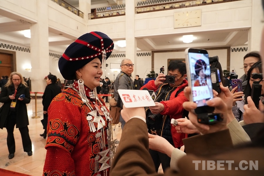 西藏代表團格桑卓瑪代表接受媒體采訪 攝影:邊子捷