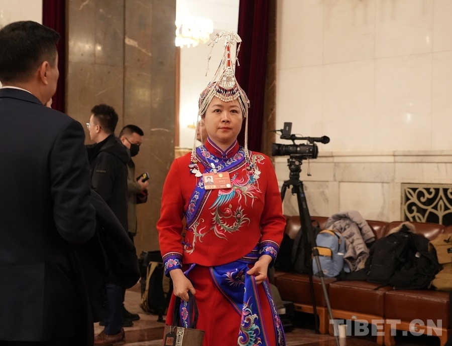 中國西藏網訊 3月5日上午,十四屆全國人大四次會議在人民大會堂開幕。開幕會前,身著民族服飾的人大代表們步入會場,接受媒體采訪。(中國西藏網 記者/邊子捷 劉莉 編輯/王妍丹)