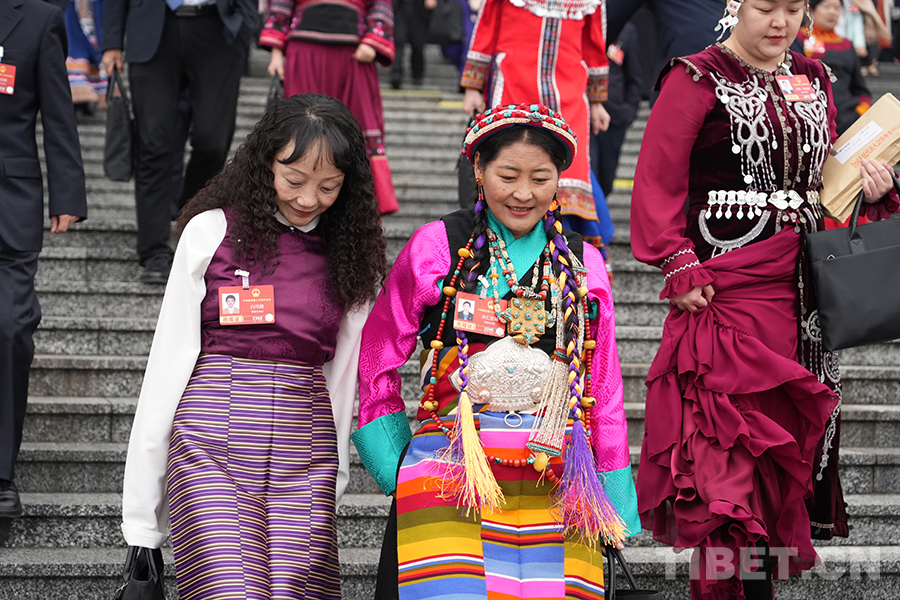 來自西藏自治區的全國人大代表走出會場 攝影:邊子捷