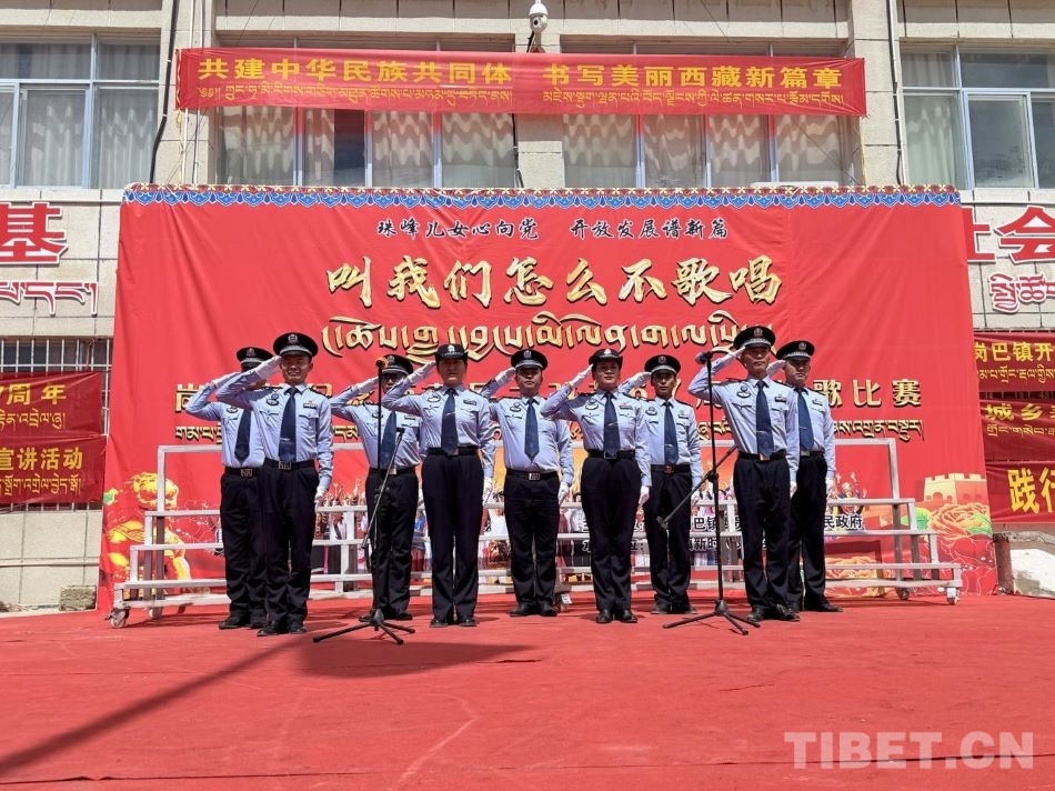 崗巴邊境派出所民警參加“叫我怎么不歌唱”紅歌比賽 攝影:普瓊