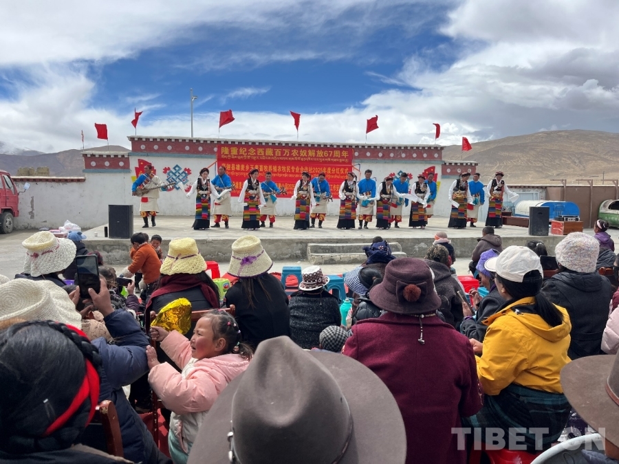 活動現(xiàn)場,當(dāng)?shù)馗刹咳罕姽餐仡櫸鞑孛裰鞲母?7年來的滄桑巨變,講述在黨的堅(jiān)強(qiáng)領(lǐng)導(dǎo)下,雄麥鄉(xiāng)農(nóng)牧民從脫貧致富到依托合作社實(shí)現(xiàn)共同增收的幸福歷程。隨后,當(dāng)?shù)夭貞蜿?duì)、文藝隊(duì)帶來精彩表演,用獨(dú)具民族特色的文藝形式歌頌黨的好政策,展現(xiàn)新時代農(nóng)牧民的精神風(fēng)貌。