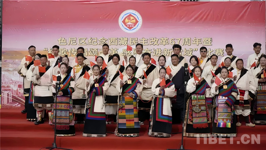 色尼區舉辦紀念西藏民主改革67周年暨“紅歌傳唱頌改革 感恩奮進新雪域”比賽 來源:色尼融媒