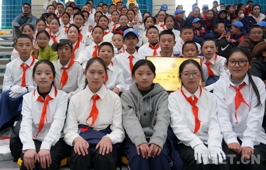 色尼區第二(杭嘉)中學舉辦紀念西藏民主改革67周年文藝活動,活動結束后獲獎班級合影 來源:色尼融媒