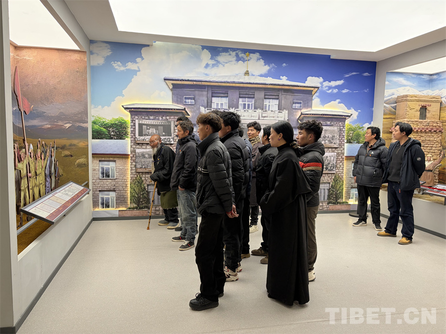 烈士陵園陳列館內陳列著大量歷史圖片、文獻資料和烈士遺物。大家邊走邊看,不時停下腳步仔細端詳,互相交流感受。大家通過一件件革命文物、一幅幅泛黃的歷史圖片和一段段翔實的文字資料,全面了解了西藏和平解放以來波瀾壯闊的光輝歷程,深刻體會了無數共產黨人、革命先烈為西藏革命和建設事業前赴后繼、無私奉獻、扎根高原的崇高精神,深切感受到西藏民主改革67年來翻天覆地的歷史巨變。