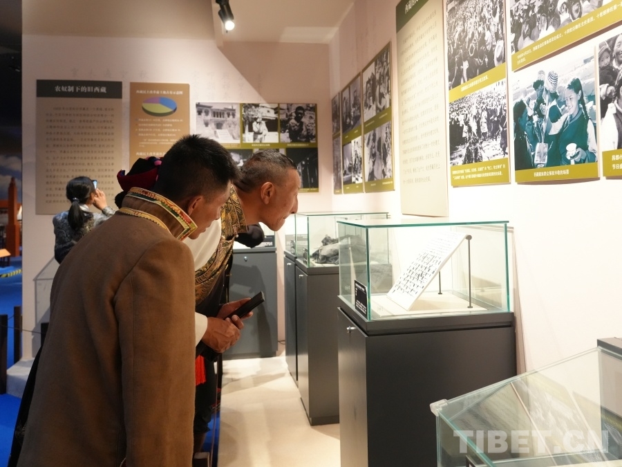在民族文化宮,山南基層群眾觀看有關西藏農奴解放的展覽 攝影:王茜