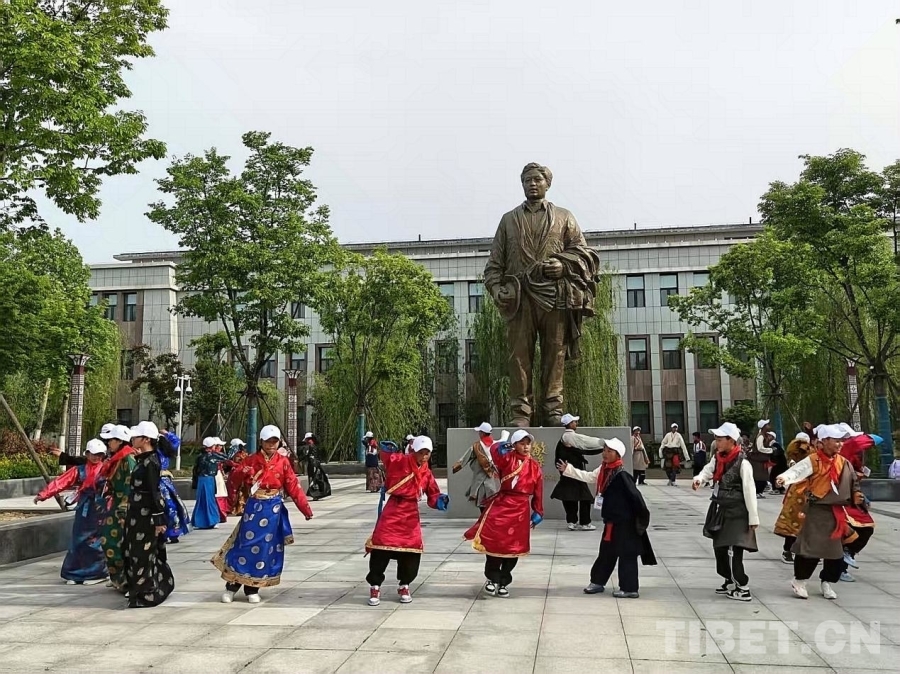 學生們在孔繁森像前跳起鍋莊舞,用最質樸的方式,表達雪域高原兒女的感恩與敬意