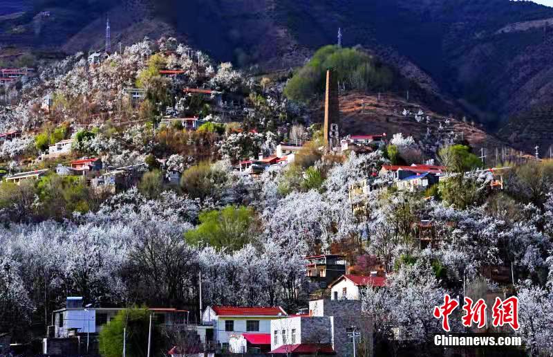 梨花叢中的村寨。 代永清 攝