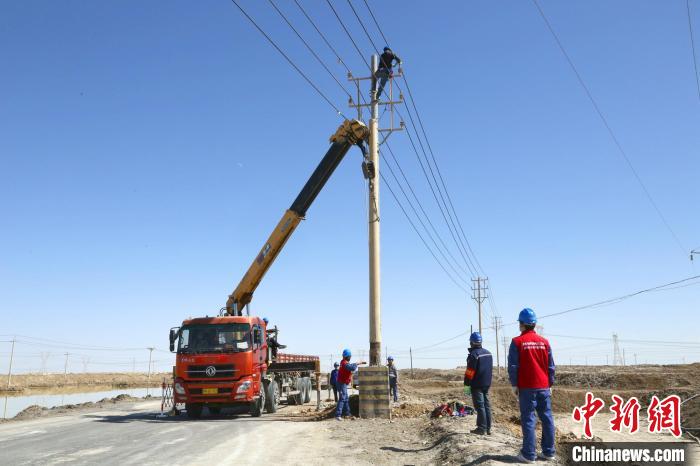 圖為青海海西供電公司員工在10千伏區七路15號桿更換桿塔組件。 國網海西供電公司供圖