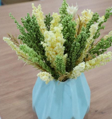 藜麥干花制成的掛飾、胸花、伴手禮等深受消費者歡迎,在花卉市場銷售火爆。截至目前,藜麥永生花已為公司帶來近700萬元的銷售額,產品更是走出國門,出口到韓國、荷蘭、日本等國家和地區。