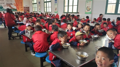 6月10日中午12時,午飯鈴聲響起,理塘縣村戈鄉小學的428名學生在操場上排得整整齊齊,等待就餐。