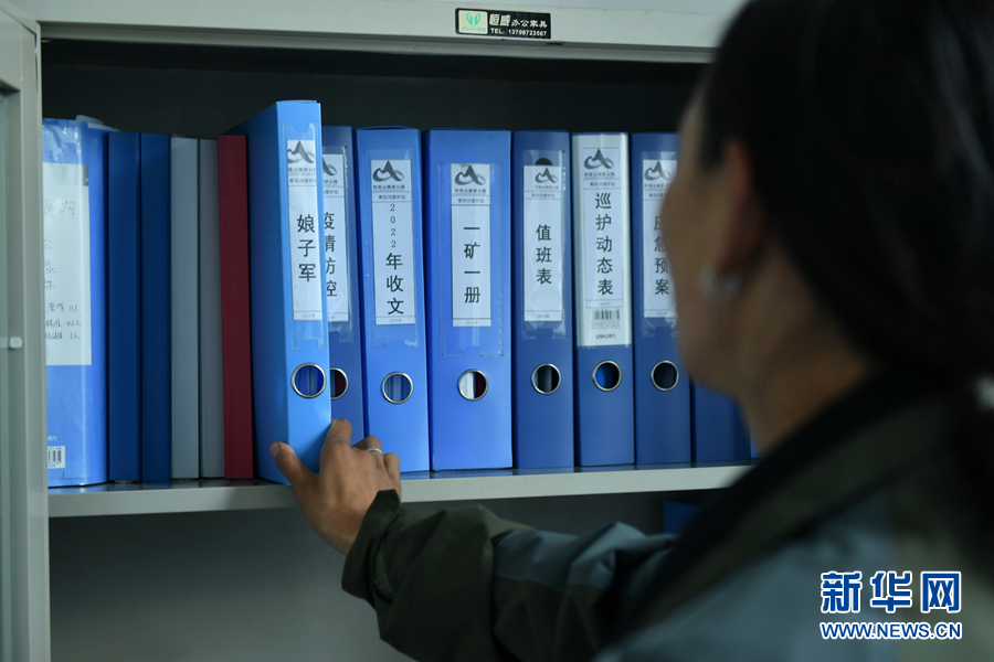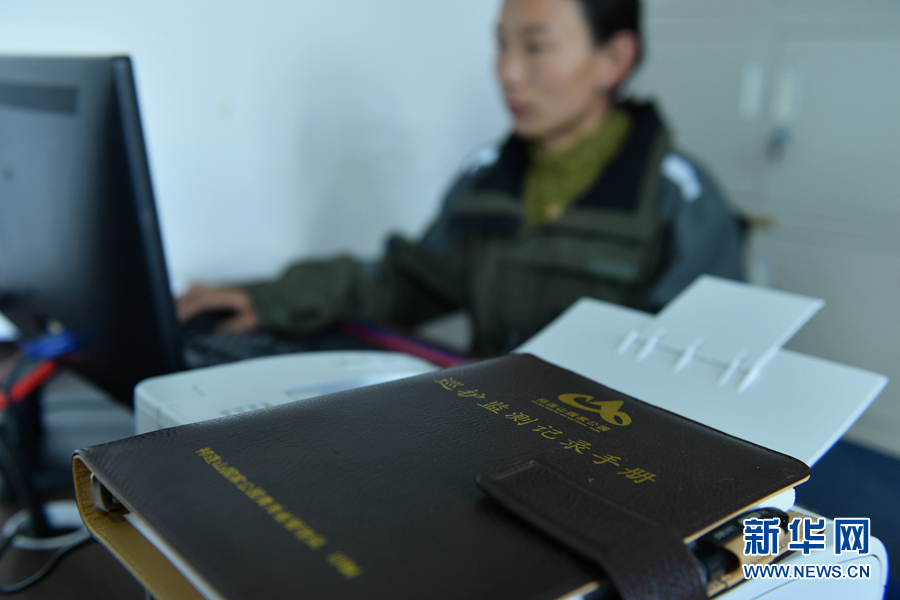 圖為代吉桑毛在管護站辦公室內工作。新華網 卡婭梅朵 攝