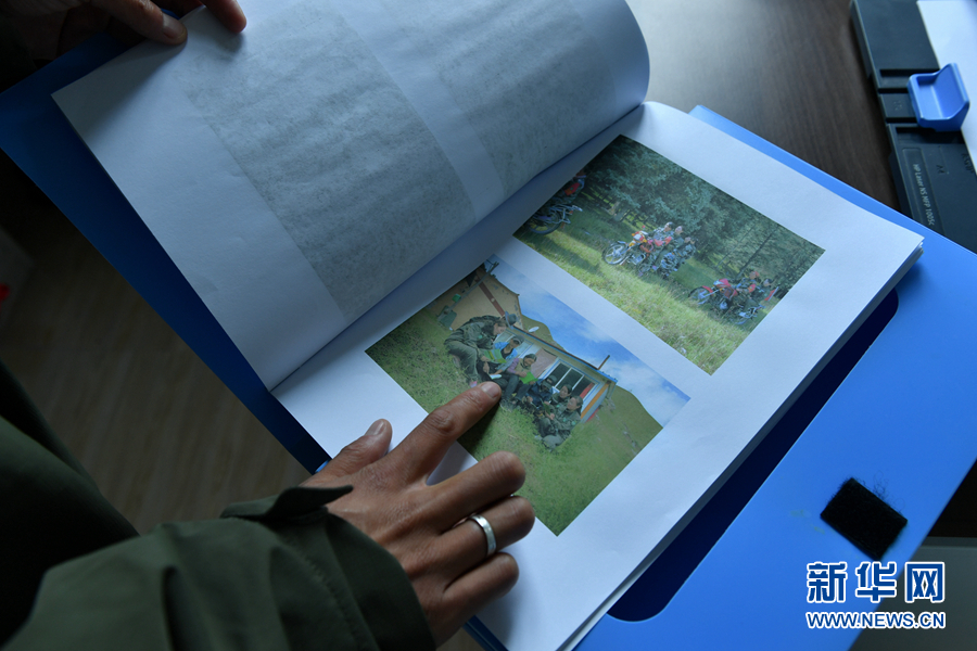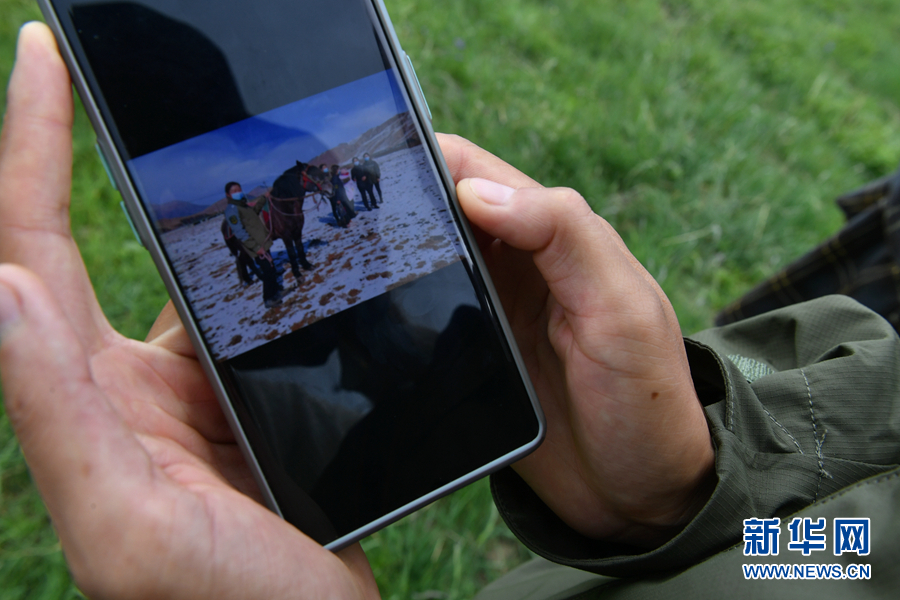 圖為代吉桑毛向記者展示冬季巡護中拍攝的工作照。新華網 卡婭梅朵 攝