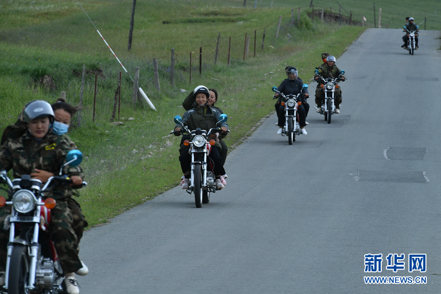 圖為代吉桑毛和隊員們騎摩托車開始巡護工作。新華網 卡婭梅朵 攝