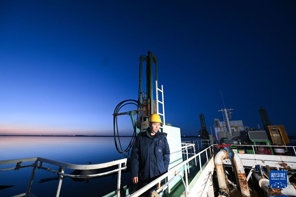 賀連福在水采船上檢查設備運行情況。新華社記者 張龍 攝