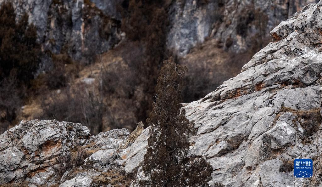 2月21日,在青海省玉樹藏族自治州雜多縣昂賽鄉境內的昂賽大峽谷內,一只雪豹正在活動。新華社記者 張宏祥 攝