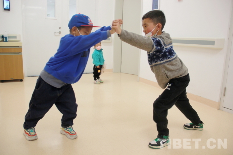圖為3月30日,即將從中國醫學科學院整形外科醫院出院的青海果洛患兒們正在一起玩耍,多日相處,彼此間已成為好朋友攝影:劉莉
