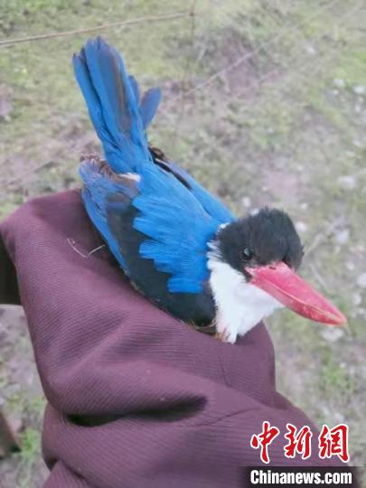 圖為斗格加和生態管護員一起救助后的“藍翡翠”。斗格加 攝