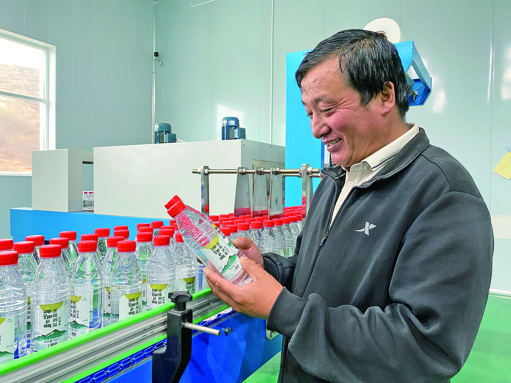 看著產生效益的礦泉水,夏吾才讓喜不自勝。欒雨嘉 攝