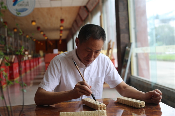 甘玉祥之所以在傳統藏茶包裝的竹篾上書寫詩詞,是想讓藏茶文化與我國傳統文化融合在一起,展現“人文之茶”的真諦。