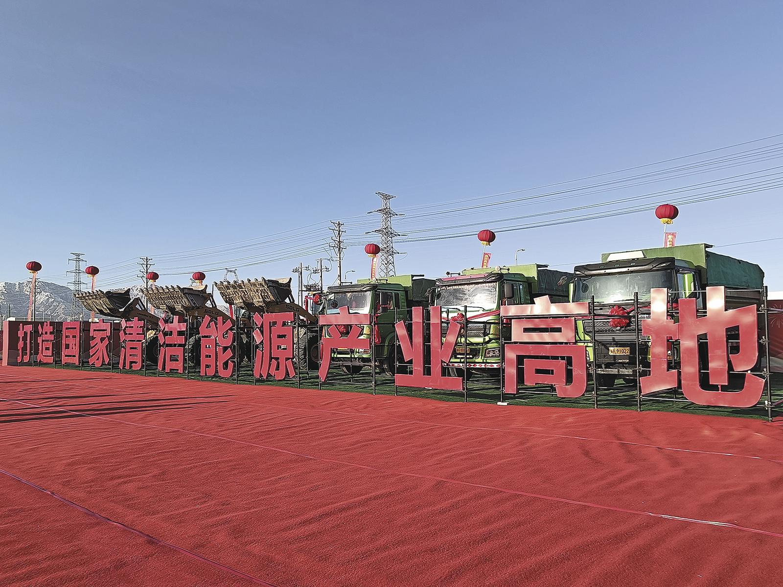 當天上午,開工現場彩旗迎風招展、獵獵作響,紅色氣球高懸空中,為這片瀚海戈壁增添了一抹亮麗的色彩。會場兩側,工程機械車輛整齊列隊,蓄勢待發。