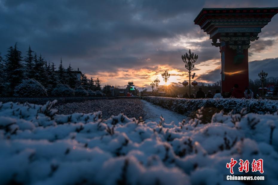 3月10日凌晨時分,雪域“圣城”拉薩的天空飄起片片雪花,迎來了今年的又一場降雪。3月的春雪為拉薩披上一層“薄紗”,銀裝素裹景色迷人。圖為雪后,拉薩民眾迎著朝陽出行。 文/曾嘉 圖/何蓬磊