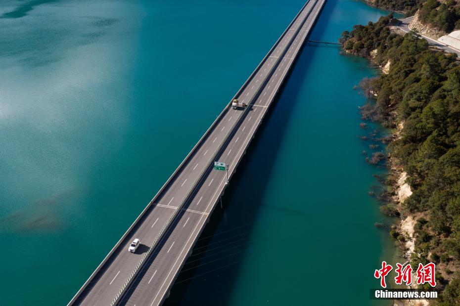 作為西藏目前“顏值最高”的高等級公路,拉林高等級公路在林芝市境內的多布特大橋路段又被譽為西藏“最美水上公路”,公路橫跨湛藍的水面,顏值爆表。 何蓬磊 攝
