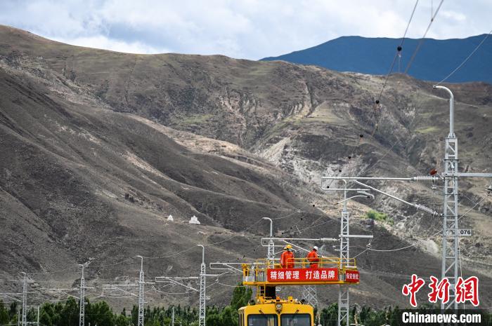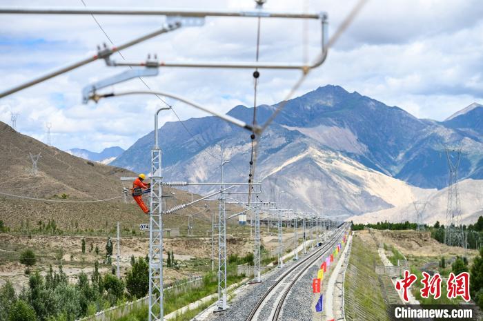 7月6日,拉林鐵路接觸網專業首件工程在西藏山南市扎囊至扎其區間成功建成。何蓬磊 攝
