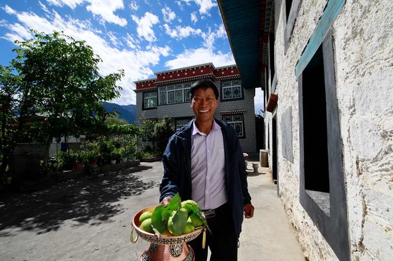 8月24日,熱情的格桑旺久拿出自己家產的水果招待客人。求是網記者 劉玉冰 攝