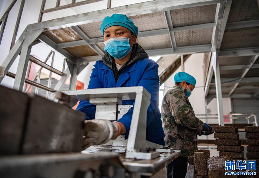 西藏易貢茶場的工人在制作磚茶(4月1日攝)。新華社記者 孫非 攝