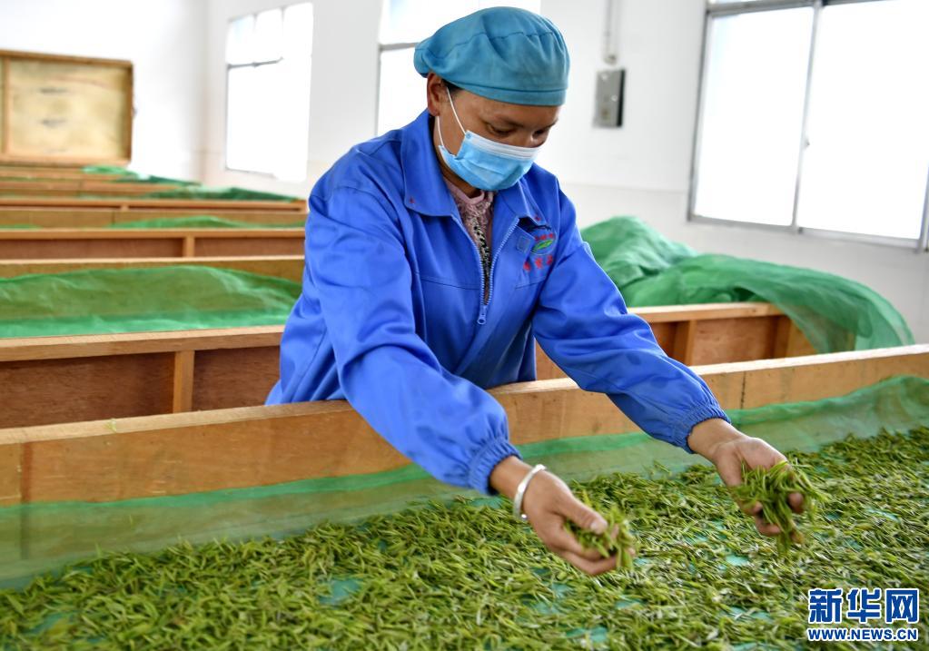 西藏易貢茶場加工車間的工人在進行茶葉攤青(5月22日攝)。新華社記者 張汝鋒 攝
